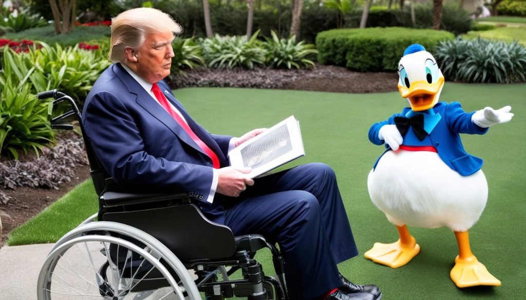 En sowieso – heb je met Ai al eens foto’s proberen te maken?? Zo wou ik voor de lol, voor deze blog, een sfeervolle magische foto van Donald Trump die een Donald Duck boekje aan het lezen is. Maar heel fraai werd het resultaat niet. Haha. Ik vind het gebruik van Ai al een kunst op zich!