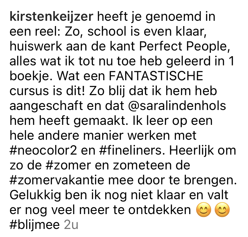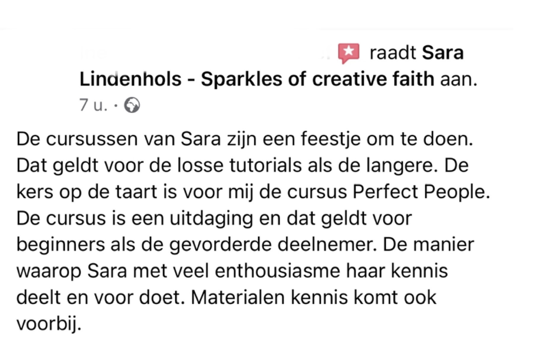 Daarnaast geef ik in elke cursus opties om te variëren en extra uitdagingen mee te pakken, zodat je je creatieve investering kunt afstemmen op de tijd en energie die jij hebt. En omdat je mijn video’s ook sneller of juist rustiger kunt afspelen, kun je de lessen precies aanpassen aan jouw manier van leren.