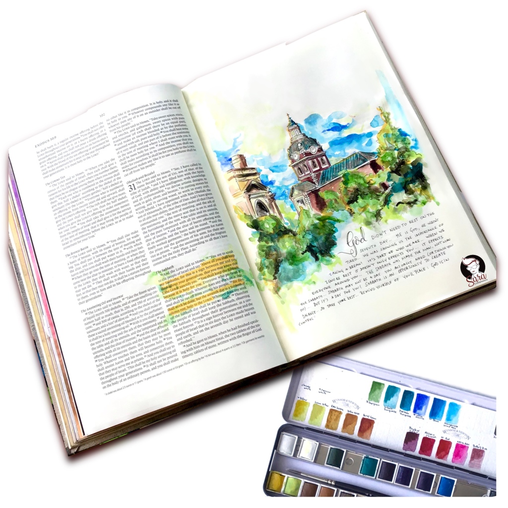 Op deze pagina vind je een aantal basistips voor bible journaling zodat je meteen kunt beginnen. Mis je informatie of zoek je een bible journaling workshop op locatie (kerk, vrouwenkring, retreat)? Mail gerust naar info@saralindenhols.nl – ik denk graag met je mee!
