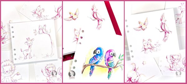 Drie modules vol poppetjes, dierenvriendjes, bloemen en rare figuren (ja, ook die overjarige rocker die per ongeluk in mijn schetsboek belandde).