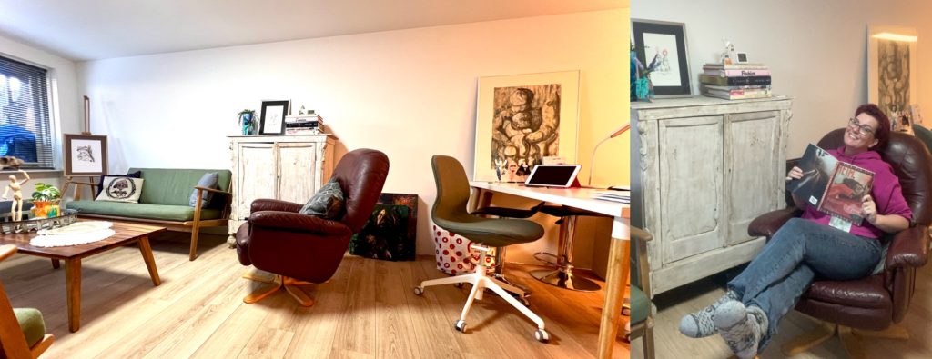 Waar ik eerst plek had voor 7 à 8 mensen, kan ik nu uitbreiden naar ongeveer 10 deelnemers. Een fijne ruimte, zachte tinten, goede daglichtlampen en vooral: een plek waar ik graag ben.