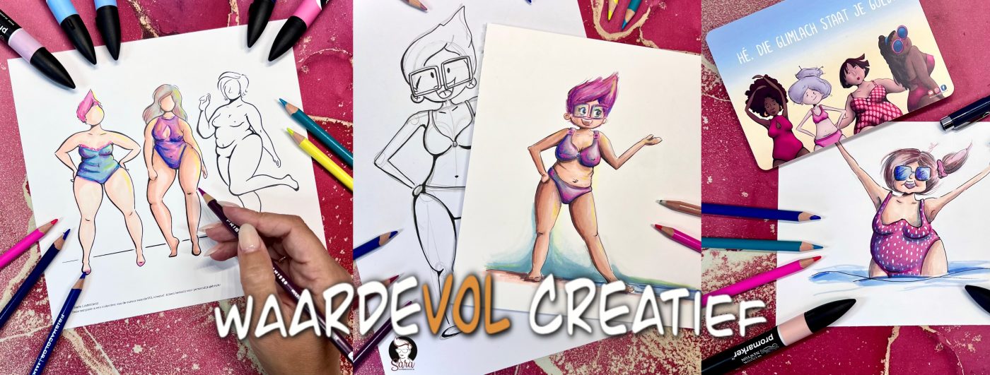 En ook dit laat ik je in de cursus Waardevol Creatief zien … van mezelf… een tekening die ik 3 jaar geleden maakte en nu opnieuw. Toen niet ingekleurd… en deze keer met zowel pastelpotloden als een versie met alcoholmarkers en kleurpotloden…